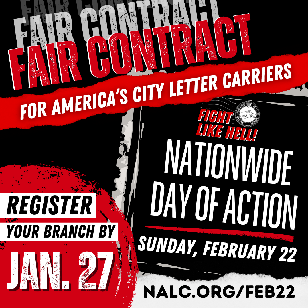 This national day of action will come days before NALC is scheduled to open contract negotiations with the Postal Service on Feb. 25.